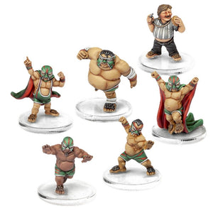 This team might seem small, but they can really bring the pain in the ring! From the Halfling Rudo' Patadas Frijoles attack to the Técnico's double grapple attacks, there's something for everyone. The Halfling Exótico is an excellent turnbuckle using his High Flyer ability to get extra range. Meanwhile, the Halfling Limpio does a bit of everything, and can jump over opponents too! The star of the show is Peso Completo, probably the biggest Halfling ever! His Low Centre of Gravity rule means that he cannot be Knocked Down, and his Mini Extinctión Turnbuckle attack is one of the most damaging moves in the game!