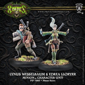 Since their mentor's withdrawal from such pursuits, Lynus Wesselbaum and Edrea Lloryrr have taken the lead in cataloguing the wonders of Caen in place of the famous professor Viktor Pendrake. With a strong knack for survival and an unquenchable thirst for knowledge, they have already pursued countless dangerous expeditions and shared more than a few close calls, forging a strong friendship in the field. Lynus' book smarts and sharp memory serve as an excellent complement to Edrea's arcane gifts, and the pair has made a name for themselves in many academic circles. Since these two will work for Cygnar, Trollbloods, Circle and both Minion pacts, these warriors will appeal to many players.