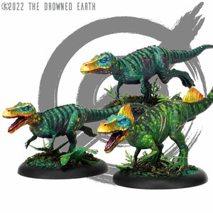 This box contains two Magnosors and one Magnosor Alpha. Magnosors are faction neutral, and so can be used with any other factions, or as NPC "AI Controlled" models using the rules and cards in the Ulaya Chronicles: Raptor Claw Island boxed set.