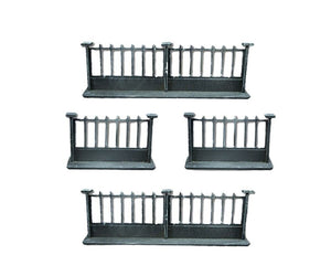 A pack of scenery MDF fences intended to be used in conjunction with the Dollhouse gate, Includes are three fenced extensions to help you to enclose any area of the game table.