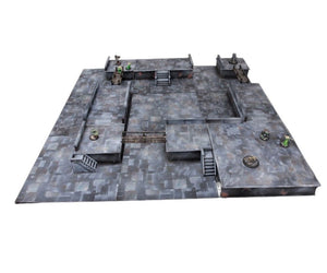 With the Street board, you can create a complete floor area for your Malifaux games. This product includes 9 30 x 30 cm tiles etched with a street pattern to create a full 90 x 90 cm play area.