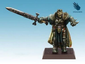 Armed with a huge, intricately inscribed sword, and spiked gauntlet - this warrior is clad in the finest armour available. A brave and physically strong fighter is always welcome in any warband who seek to wander these strange lands.