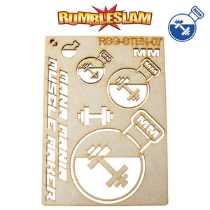 A whole mess of different stencils on each frame await you, perfect for advertising your favourite brand all over your RUMBLESLAM Deluxe Ring. Each symbol is specially designed to sit in different places on the ring or around your stadium, with large logos for the centre, and smaller ones for the outsides.