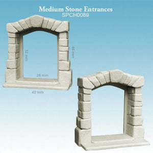 The set contains 2 one-piece high-quality resin Medium Stone Entrances which require cleaning and painting. Compatible with Medium Doors. Perfect for buildings conversions and dioramas.