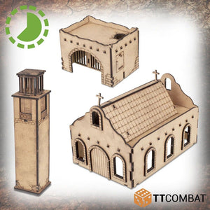 The Mexican Saints Row is made from 3mm MDF. It is a great scenery kit to use in Western themed skirmish game, as well as roleplaying games, and will work perfectly with 28-32mm games and miniatures.