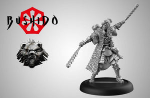 Wielding two full-size, Tetsubo, Akasuki is the best representation of Minimoto's "You don't want to hurt me" tank mechanics. As well as the high wound boxes and Armour traits, Minimoto have a theme running through their mechanics of discouraging opponents from hurting them. In this case, not only will damage grant Brutal, very much increasing her melee ability, but any attempt to afflict her with