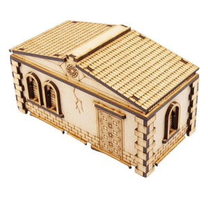 This kit is made from 3mm MDF and has been designed for Carnevale, using multiple storeys to climb and jump, and roofs at easy angles so that miniatures will not fall off when darting across the Venetian skyline. It is a great piece of scenery to use with other 28-32mm games.