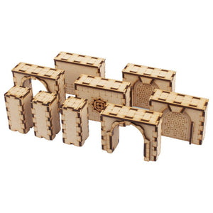 This set contains four walls, two archways, and three columns, allowing you to make a sprawling maze in your Venetian streets.