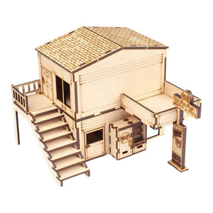 The Motel 66 Reception is made from 3mm MDF, is easy to put together and looks great on the tabletop. Great scenery to use with modern 28-35mm wargames or dioramas.
