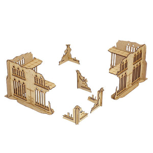 The Municipium Sector Medium Ruins provides two corners that can be used to create a large footprint for a ruined structure or separately for some crumbling corners.