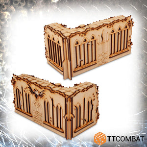 2 Gothic style small corner ruins from the London Grand Tournament Bundle. Can be bought individually or to supplement or customise your LGT Board.