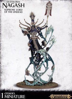 This box set contains one highly detailed plastic miniature of Deathlords Nagash Supreme Lord Of The Undead and a base.