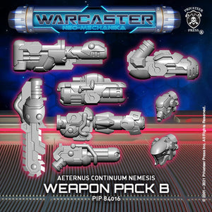 Increase your warjack loadout customization options with this weapon pack, featuring one copy of each weapon included in the full Nemesis B kit: 6 weapons, 2 cortexes, and a card for each weapon.