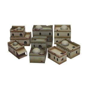 A set of 7 different buildings with different sizes and heights that will allow you to set up an Arabic or desert themed table the easiest and most economical way. All buildings contain the domes as an optional assembly.