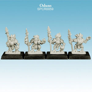 The set contains 4 one-piece high-quality resin miniatures of Oduns and four 20 mm square plastic bases. Require assembly, cleaning and painting. Scenic bases not included. The miniatures are dedicated for the Gaeldor army in Argatoria Wargame.