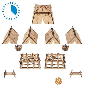 The Ogre Tents & Cages set contains 1 large chieftains tent, 4 smaller tents, 2 beast cages, fences and braziers. This simple set is perfect for a roleplay encounter or for a thematic encampment on a battle board. The possibilities are endless!