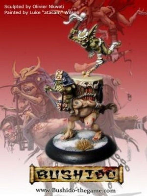 This mischievous, lazy pair have tied their war drum to the back of a slave. They ride into battle charged with getting the best out of their companions, the pounding rhythm of the drum drives the Bakemono on to achieve above and beyond their full potential.