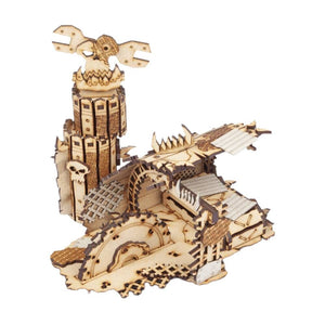 This Mek shop is the smaller cousin to the Mek Garage, perfect for making quick repairs to your scabby old vehicles to rush them back onto the battlefield. When something's too busted to repair it comes with a handy gargantuan saw (safety guards not included) to chop it up into scrap! The "FYOOL" stores sit at approximately 18cm tall so it stands out on the gaming board.
