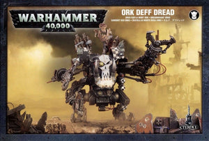 An Ork Deff Dread is a clanking, stomping, smashing Ork Robot, piloted by an Ork hell bent on destruction. Armed with all manner of buzzing saws and crushing claws, Deff Dreads excel in close combat. Although some arms are often replaced with Ork Big Shootas, Rokkit Launchas and Skorchas to shoot up the enemy before crashing into their front lines.