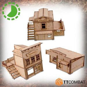 The Pitchstone Municipal contains 3 buildings. All of which are a staple to any Wild West tabletop. Not just for its fantastic aesthetics, It promotes loads of playability features such as removable roofs, allowing for interior playing. Alongside this, the flat roofs allow for another surface to be played upon. The window ledges have been designed to provide ample line of sight for your miniatures.