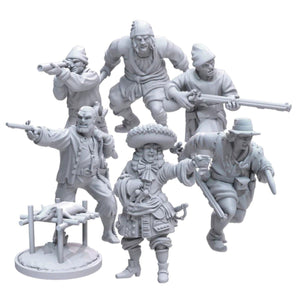 Port Royal is a campaign based, tactical, small-scale warband-sized skirmish wargame that is easy and fast to learn and play. Loosely based on the historical events following the 1692 earthquake that devastated the island of Jamaica. In Port Royal, players take control of small companies of pirates, privateers, Native Americans, African Maroons, or local government forces as they battle against opponents for their share of the plunder that litters the ruins of the place. Players will gain loot and experience between games while building infamy and growing in their piratical expertise. But take heed! The ruins are fraught with dangers! Falling buildings, wild animals, desperate civilians, and opposing companies can bring a quick end to members of your company.