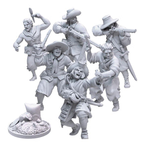 Port Royal is a campaign based, tactical, small-scale warband-sized skirmish wargame that is easy and fast to learn and play. Loosely based on the historical events following the 1692 earthquake that devastated the island of Jamaica. In Port Royal, players take control of small companies of pirates, privateers, Native Americans, African Maroons, or local government forces as they battle against opponents for their share of the plunder that litters the ruins of the place. Players will gain loot and experience between games while building infamy and growing in their piratical expertise. But take heed! The ruins are fraught with dangers! Falling buildings, wild animals, desperate civilians, and opposing companies can bring a quick end to members of your company.