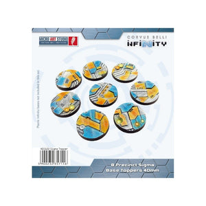 This pack contains a set of 8 unpainted, randomly chosen Precinct Sigma Base Topper resin bases.