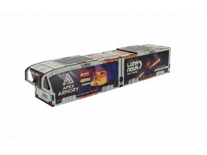 The Precinct Sigma Bus Services PREPAINTED set consists of one bus and one trailer. It can be used as an articulated vehicle or a single bus and a pod.