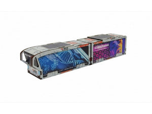 The Precinct Sigma Bus Services PREPAINTED set consists of one bus and one trailer. It can be used as an articulated vehicle or a single bus and a pod.