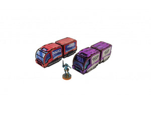 The Precinct Sigma Pepinillo Vans PREPAINTED set consists of one van and one trailer. It can be assembled in various ways and used as an articulated vehicle or single van and pods.