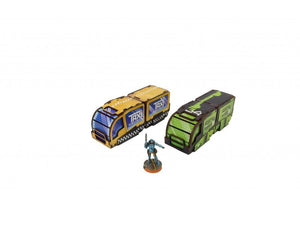The Precinct Sigma Pepinillo Vans PREPAINTED set consists of one van and one trailer. It can be assembled in various ways and used as an articulated vehicle or single van and pods.