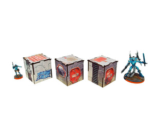 The Precinct Sigma Sheds PREPAINTED set consists of 3 pieces, dedicated for Infinity the Game by Corvus Belli.