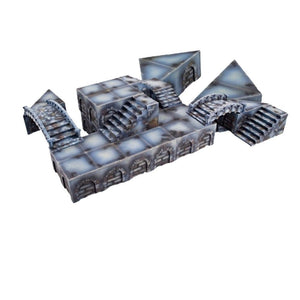 The Raised Squares and Bridges set contains three pairs of structures - rectangular, square and triangular platforms - along with three flights of stairs and two bridges. With the Raised Squares and Bridges set you can create an elevated area of the battlefield that can also be easily modified and stored between the games. Each level of this structure is 7cm/2.76" high. Includes full-color assembly instructions.