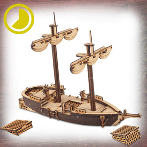 As well as being great scenery for a dock board, this kit comes with its own rules, making it a playable model for your Rashaar gang. It comes supplied with its own sail, but contains enough parts for you to rig your own if you're so inclined.