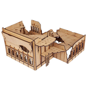 The Razed Mercantine was designed as a versatile set of corners that can be used alone, or as a single building. Each section is able to slot into place to make the full building with plenty of space inside for all manner of infantry.