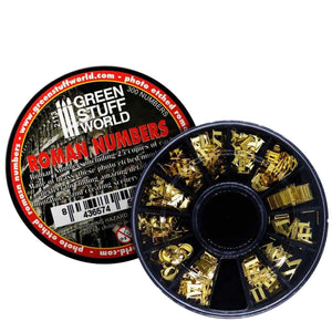 Collection of 300 roman themed runes, symbols and signs made of brass. There are 12 different types to choose from, separated in different compartments. They are perfect for adding details to armour, weapons and banners of your models and miniatures or for decorating dioramas. We recommend using cyanocrylate glue in small quantities.