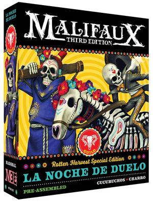 Celebrate the fall season with Wyrd's third set of Rotten Harvest models: La Noche De Duelo! This box set contains pre-assembled alternate sculpts and cards for the Marshal Crew.