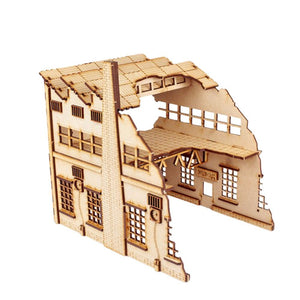 The Ruined Factory is a great medium-sized building. One interior floor plus windows on every side for infantry firing positions. The exterior is highly detailed and having a few of these on your board will help fill out any ruined city or industrial sector.