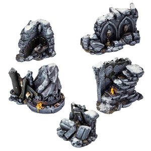 This set contains five high quality resin models of Ruined Hallway scattered rubble. Designed to fit 28mm heroic scale wargames.