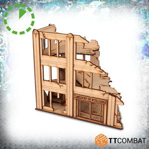 The once towering Lexington Building is now a crumbling shell, a shadow of its former self. This kit has 3 storeys, with staircases and collapsed floor. Its open frame makes for easy access during gaming.