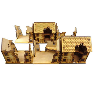 The Ruined Townhouse Set is made from 3mm MDF, easy to put together and looks great on the tabletop. It is a great piece of scenery to use with Flames of War or any other 15mm World War II game. We advise using PVA glue to build it for the best results.