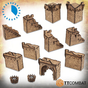 Savage Domain: Ruined Castle Walls is made from 3mm MDF. It is a great scenery kit to use in fantasy skirmish games, as well as roleplaying games, and will work perfectly with 28-32mm games and miniatures.