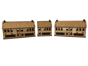 The Shops Set is made from 3mm MDF, easy to put together and looks great on the tabletop. It is a great piece of scenery to use with Flames of War or any other 15mm World War II game. We advise using PVA glue to build it for the best results.