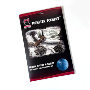 The Snowy Rivers & Roads set contains 5 double-sided rugged neoprene templates; Each piece shows a stony pathway to wander deep into the snow-covered woods with, or an icy river way terminating in a rounded pond to add extra difficult ground to battle over or lead to mysterious treasures.