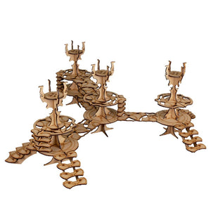 The Space Elf Spires are made from 3mm MDF. It is a great scenery kit to use in sci-fi skirmish games, and will work perfectly with 28-32mm games and miniatures.