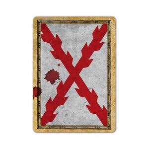 Any standard deck of 54 playing cards may be used to play the game. These custom decks produced by Firelock Games represent the individual factions and include all relevant game data printed on the card faces.