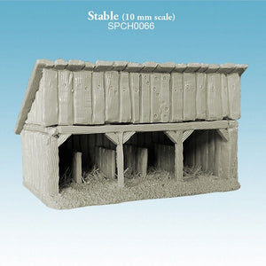 Kit contains one Stable ideal for use with 10 mm scale models. The product is made from high-quality cast resin.