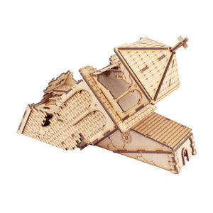 The Sunken Tower is a true centrepiece for your board. Toppled over, it's split apart which allows for handy climbing spots! The entire tower has collapsed onto another building, and both have loads of flat surfaces so your models will be safe (even if the characters aren't in-game).