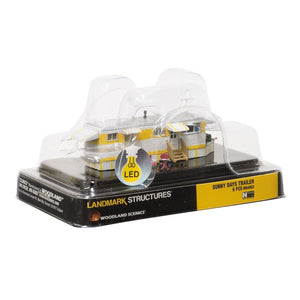 Give your layout a bright and happy home anyone will love. The Sunny Days Trailer is perfect for adding some cheer to your layout. Building details include multiple awnings for plenty of shade, wooden railings and steps, a TV antenna, window treatments, a trashcan and several doors and windows. Additional features include an unattached table and chairs for custom placement.
