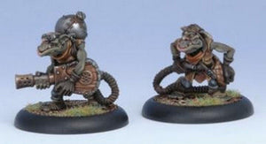 Swamp Gobbers are clever and hardy creatures who have discovered a unique mixture of fluids that combine rapidly to produce a huge volume of dense fog. The bellows crew prefers not to fight if possible, but they are willing to provide the services of their fog-making machine to obscure and conceal those who hire them. contents: This blister pack contains 1 x Minion Swamp Gobber Fog Bellows Crew.